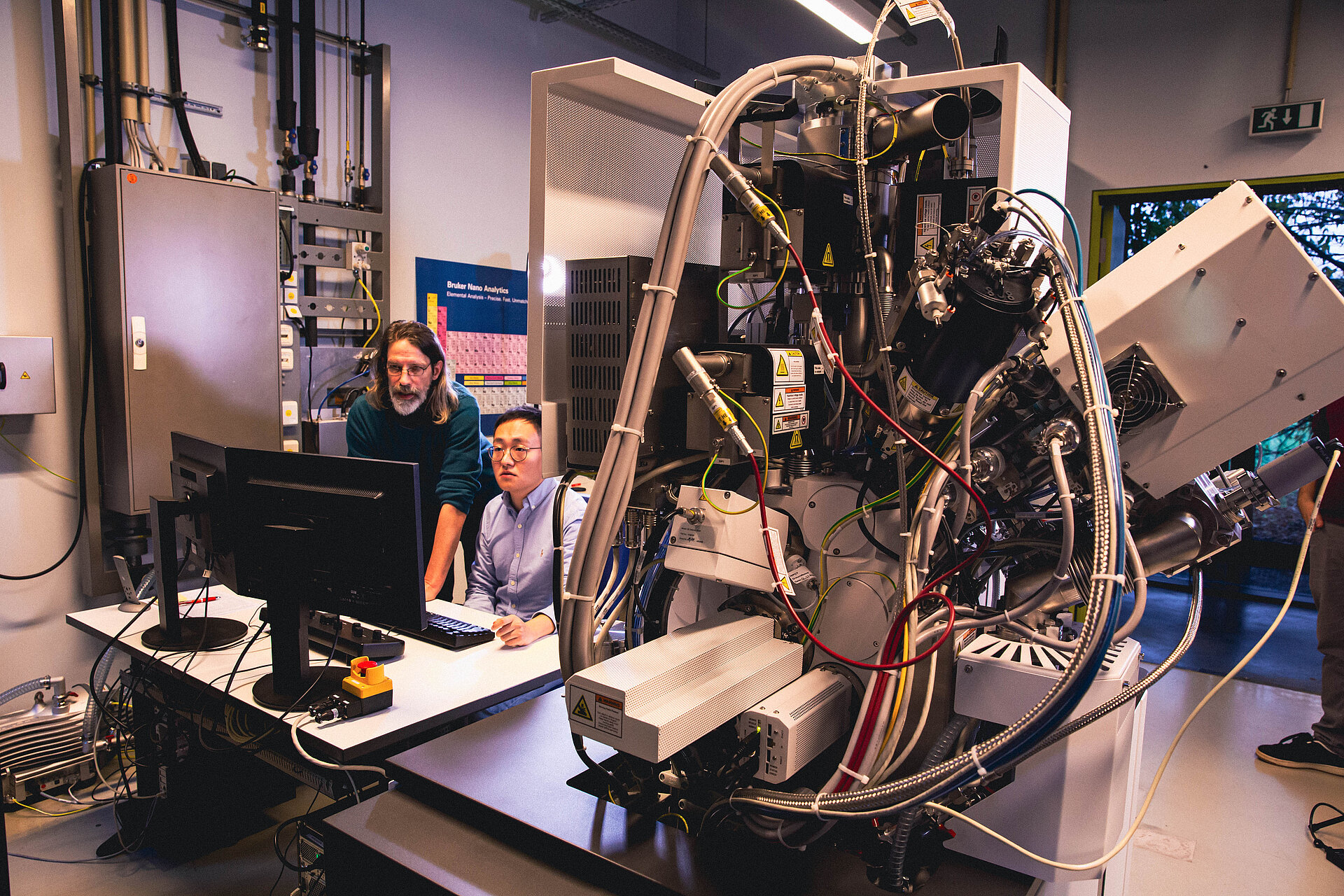 This microscope not only images individual atomic layers; it also measures the chemical composition, local electric fields and the electronic structure of materials under realistic operating conditions, such as high temperatures, applied voltage or reactive gas atmospheres. The monochromator integrated into the Spectra Ultra enables an energy resolution in EELS spectra better than 25 meV. In combination with the new ILIAD EELS optics, this makes it possible to record energy-loss spectra in ranges that until now were essentially accessible only at synchrotron X-ray facilities – but here with atomic spatial resolution directly in the electron microscope. A novel “always-in-focus” optical design ensures that this information remains sharp and reliable over a very wide energy range. The Ultra-X detector adds extremely efficient, low-dose X-ray analysis: thanks to its very high efficiency, chemical maps can be acquired much faster or at a much lower electron dose – a key advantage for sensitive samples such as advanced semiconductors, battery materials or sensor structures. The system is among the first of its kind to be installed in an academic laboratory.