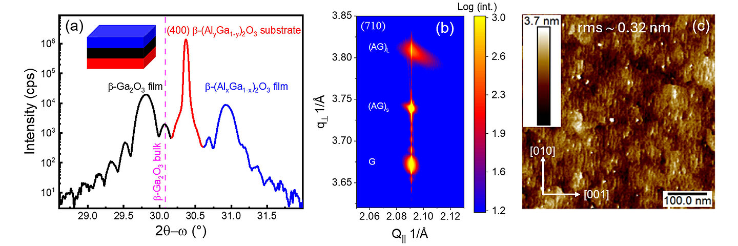 β-Ga₂O₃ ist als Halbleiter mit extrem großer Bandlücke und hohem Durchbruchfeld etabliert und eignet sich daher hervorragend für energieeffiziente Hochspannungsbauelemente. Durch Legierung mit Aluminium zu β-(AlxGa1-x)2O3 lässt sich die Bandlücke weiter vergrößern. Das Aufwachsen von Schichten mit hohem Aluminiumgehalt ist jedoch aufgrund der Gitterfehlanpassung zu herkömmlichen β-Ga₂O₃-Substraten eine Herausforderung.